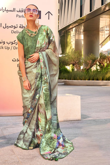 Saree color - Green. Fabric - Swiss satin. Work/Pattern - Digital printed. Saree Length -...