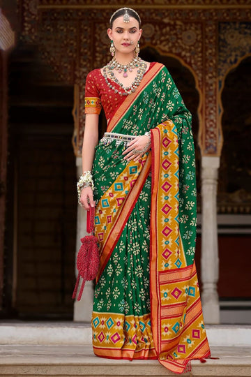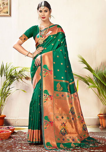 Saree color - Green. Fabric - Paithani silk. Work/Pattern - Weaving. Blouse Color - Green....