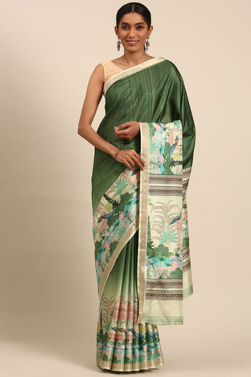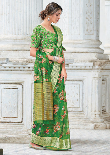 Saree color - Green. Fabric - Organza. Work/Pattern - Printed. Blouse Color - Green. Saree...