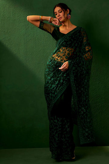 Saree color - Green. Fabric - Net. Work/Pattern - Embroidery work. Saree Length - 5.50...
