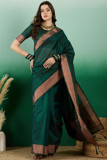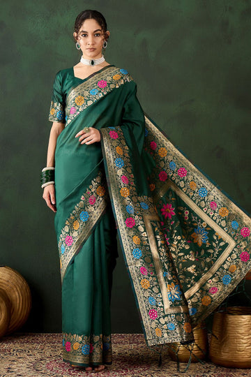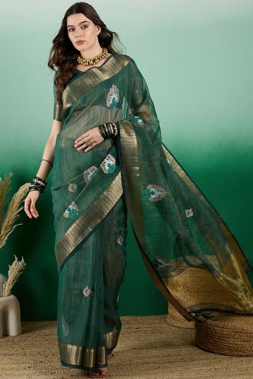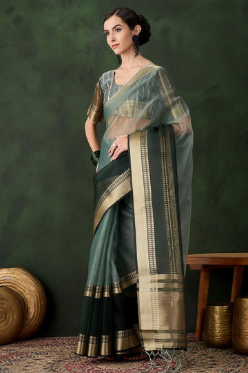 Saree color - Green. Fabric - Organza. Work/Pattern - Weaving. Saree Length - 5.50 Meters....