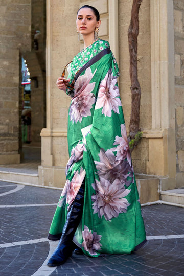 Saree color - Green. Fabric - Satin crepe. Work/Pattern - Printed. Saree Length - 5.50...