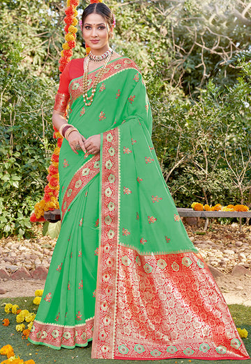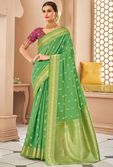Saree color - Green. Fabric - Silk. Work/Pattern - Weaving. Saree Length - 5.50 Meters....