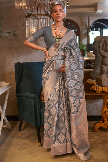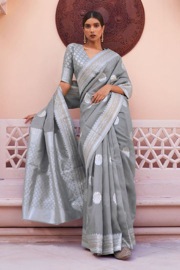 Saree color - Grey. Fabric - Khadi organza. Work/Pattern - Weaving work. Saree Length -...