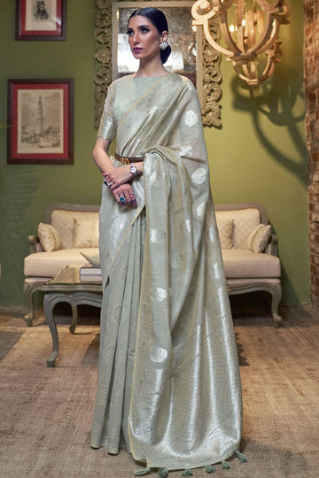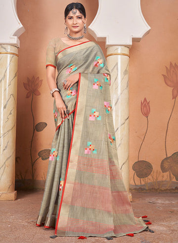 Saree color - Grey. Fabric - Pure linen. Work/Pattern - Handloom weaving work. Saree Length...
