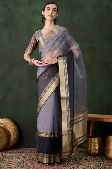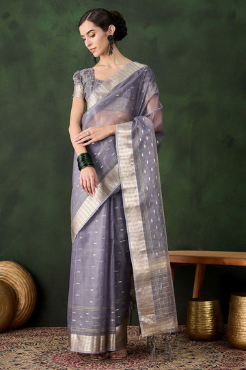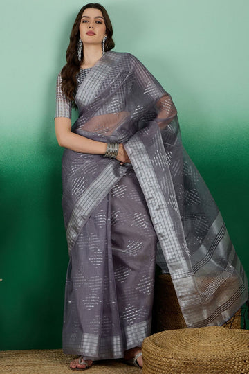 Saree color - Grey. Fabric - Organza. Work/Pattern - Weaving. Saree Length - 5.50 Meters....