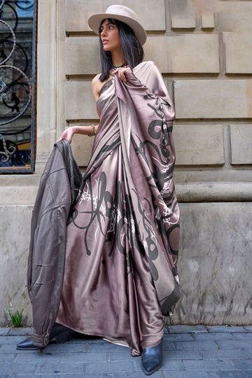 Saree color - Grey. Fabric - Japan satin. Work/Pattern - Digital printed work. Saree Length...
