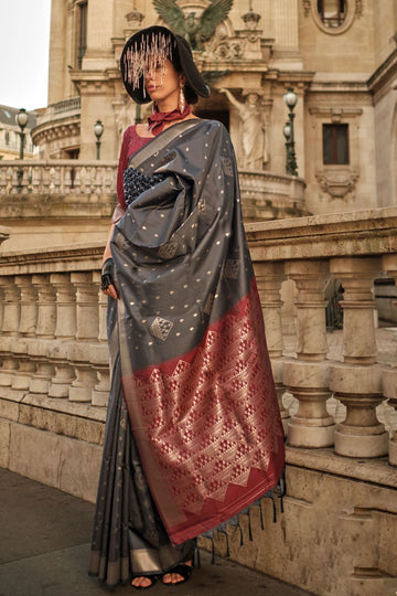 Saree color - Grey. Fabric - Pure zari weaved base silk. Work/Pattern - Zari weaving....