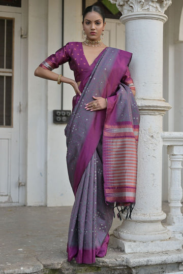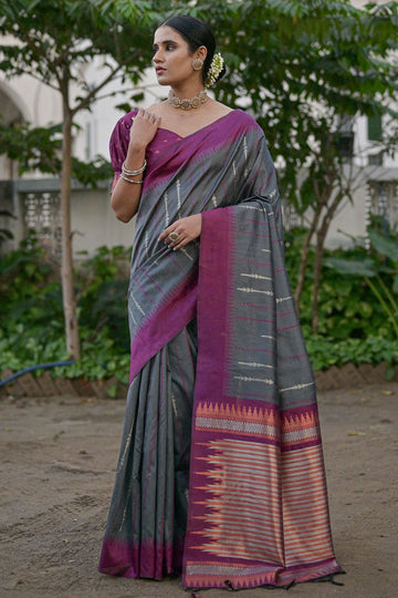 Saree color - Grey . Fabric - Soft silk. Work/Pattern - Handloom woven work. Saree...