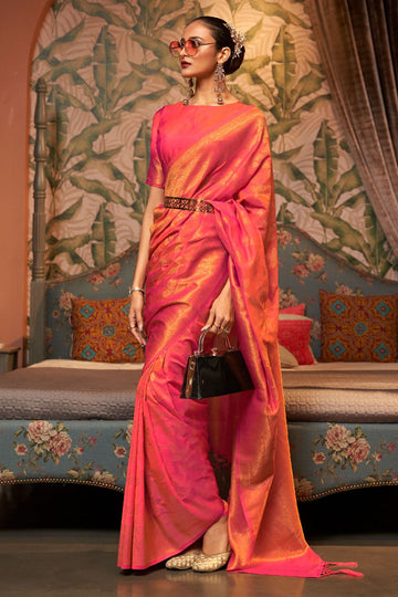 Saree color - Hot pink. Fabric - Silk. Work/Pattern - Weaving. Saree Length - 5.50...
