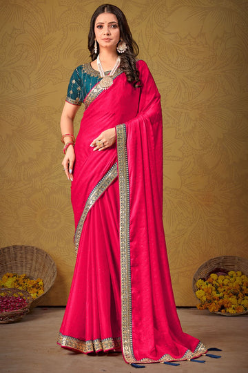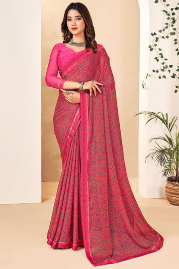Saree color - Hot pink. Fabric - Chiffon. Work/Pattern - Printed with banarasi lace border....