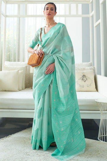 Saree color - Ice blue. Fabric - Two tone modal. Work/Pattern - Lucknowi chikankari weaving....
