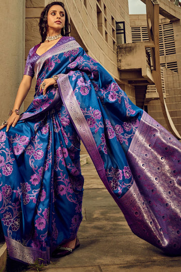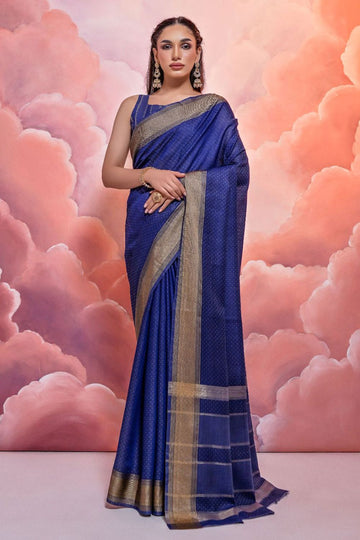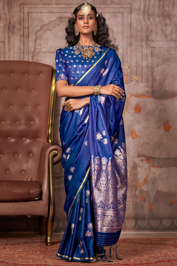Saree color - Indigo blue. Fabric - Satin brasso. Work/Pattern - Zari weaving. Saree Length...