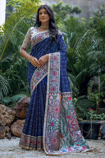 Saree color - Indigo blue. Fabric - Crepe. Work/Pattern - Printed. Blouse Color - Indigo...