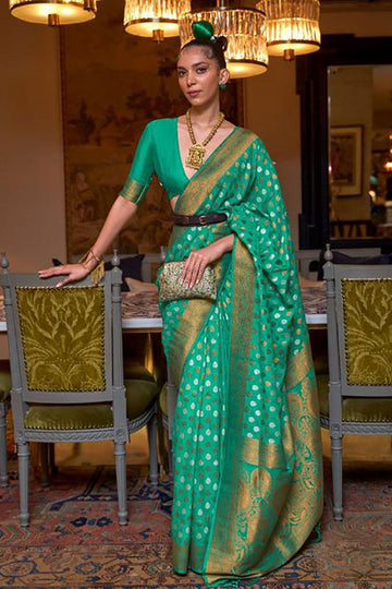 Saree color - Sage green. Fabric - Pure satin silk. Work/Pattern - Handloom banarasi zari...