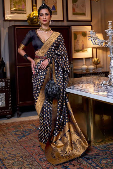 Saree color - Black. Fabric - Hand spun cotton silk. Work/Pattern - Zari weaving. Saree...