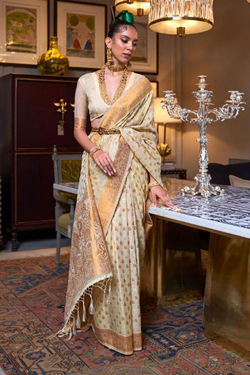 Saree color - White. Fabric - Hand spun cotton silk. Work/Pattern - Zari weaving. Saree...