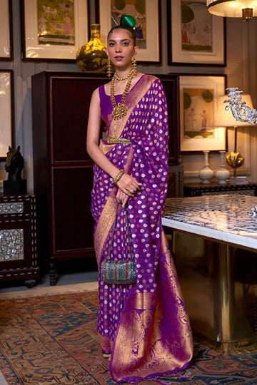 Saree color - Mauve. Fabric - Pure satin silk. Work/Pattern - Handloom banarasi zari weaving....