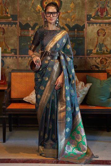 Saree color - Persian blue. Fabric - Soft handloom silk. Work/Pattern - Weaving, sequins and...
