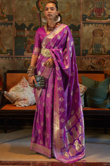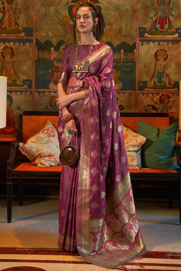 Saree color - Violet. Fabric - Pure satin tanchoi. Work/Pattern - Handloom weaving. Saree Length...
