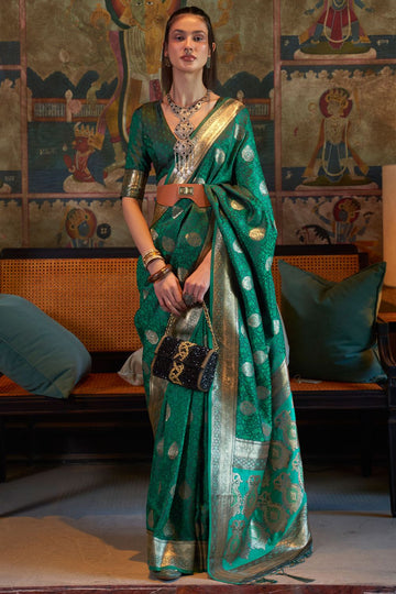 Saree color - Rama green. Fabric - Pure satin tanchoi. Work/Pattern - Handloom weaving. Saree...