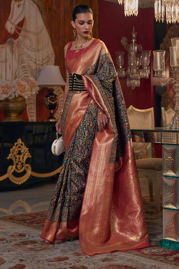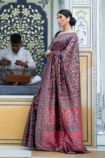 Saree color - Black. Fabric - Silk. Work/Pattern - Kashmiri chaap handloom weaving. Saree Length...