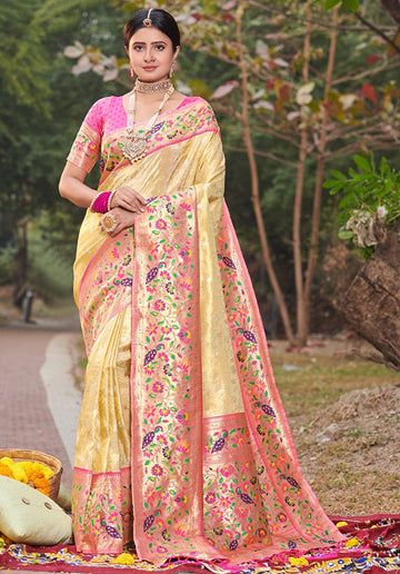 Saree color - Golden yellow. Fabric - Paithani silk. Work/Pattern - Zari and woven work....