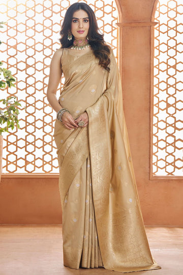 Saree color - Beige. Fabric - Pure banarasi silk. Work/Pattern - Zari weaving. Saree Length...