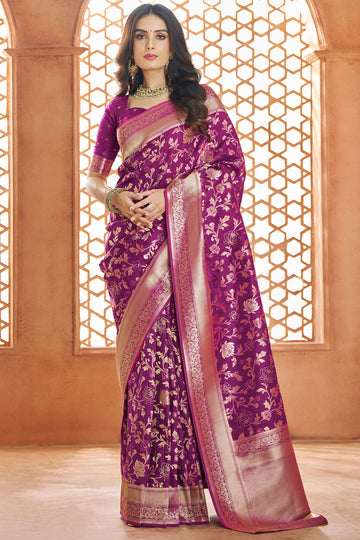 Saree color - Magenta. Fabric - Pure banarasi silk. Work/Pattern - Zari weaving. Saree Length...