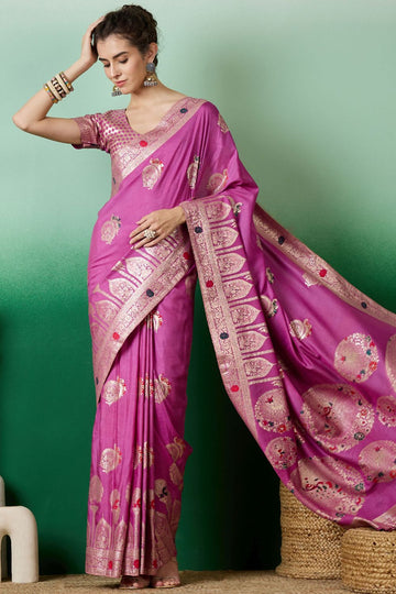 Saree color - Lavender. Fabric - Staple dola jacquard.. Work/Pattern - Weaving work. Saree Length...