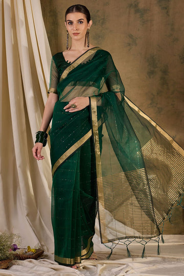 Saree color - Green. Fabric - Organza silk. Work/Pattern - Weaving work. Saree Length -...