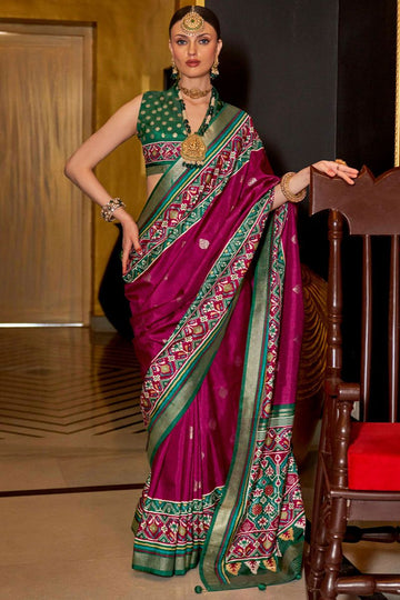 Saree color - Magenta. Fabric - Mercerized sigma silk. Work/Pattern - Classical patola design and...