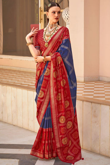 Saree color - Navy blue. Fabric - PV silk. Work/Pattern - Patola design foil print...