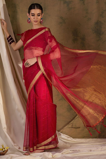Saree color - Red. Fabric - Organza silk. Work/Pattern - Weaving work. Saree Length -...