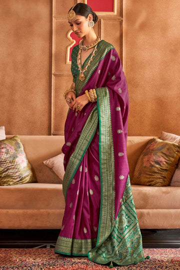 Saree color - Magenta. Fabric - Mercerized silk. Work/Pattern - Classical patola design and sambalpuri...