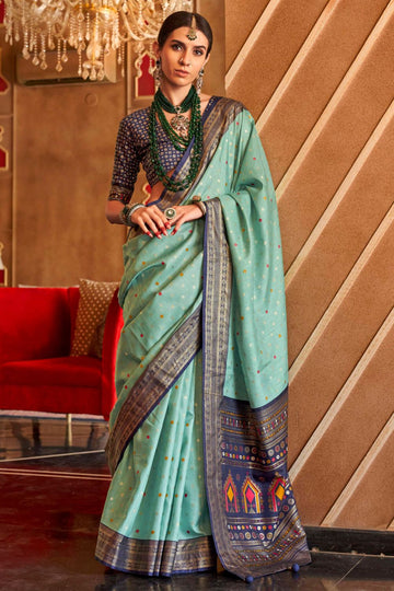 Saree color - Mint blue. Fabric - Mercerized silk. Work/Pattern - Classical patola design and...