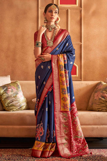 Saree color - Navy blue. Fabric - Mercerized silk. Work/Pattern - Classical patola design and...
