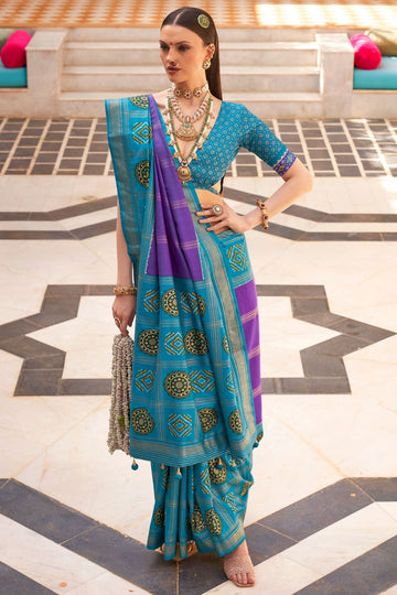 Saree color - Purple. Fabric - PV silk. Work/Pattern - Patola design foil print design...
