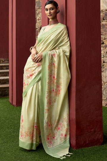 Saree color - Pastel green. Fabric - Art silk. Work/Pattern - Digital print. Saree Length...