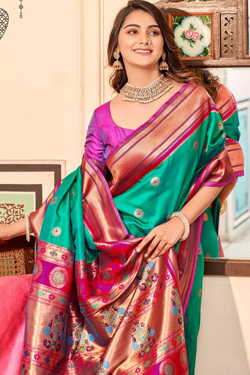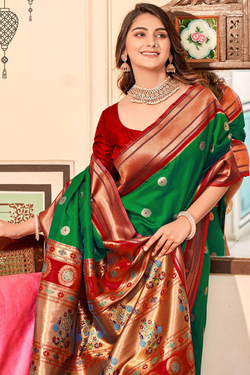 Saree color - Rama green. Fabric - Peshwai paithani silk. Work/Pattern - Weaving. Saree Length...