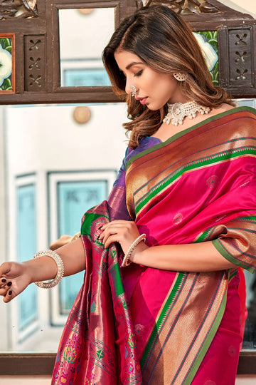 Saree color - Rani pink. Fabric - Peshwai paithani silk. Work/Pattern - Weaving. Saree Length...