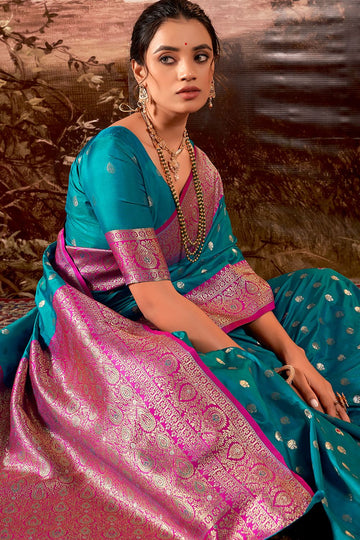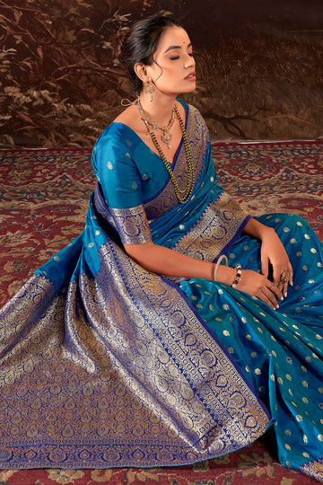 Saree color - Peacock blue. Fabric - Soft banarasi silk. Work/Pattern - Zari weaving. Saree...