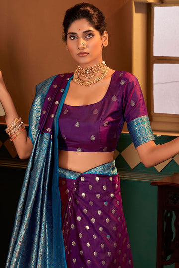 Saree color - Purple. Fabric - Soft banarasi silk. Work/Pattern - Zari weaving. Saree Length...