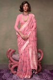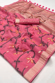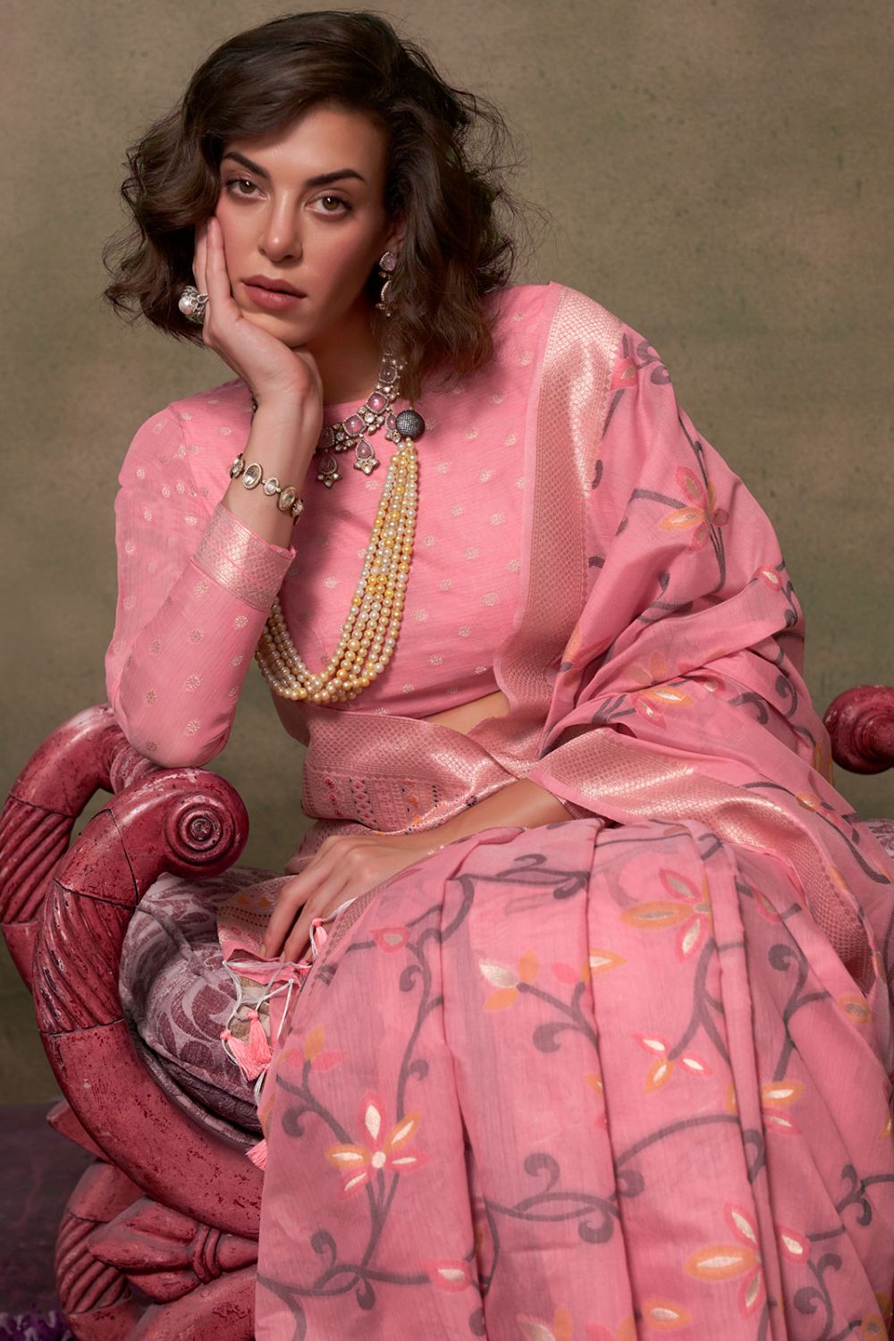 Carnation Pink Zari Woven Mal Spun Cotton Saree for Party