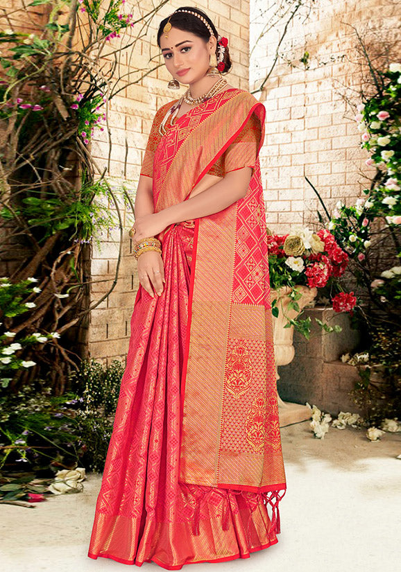 Cherry Pink Woven Silk Saree for Party