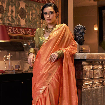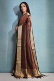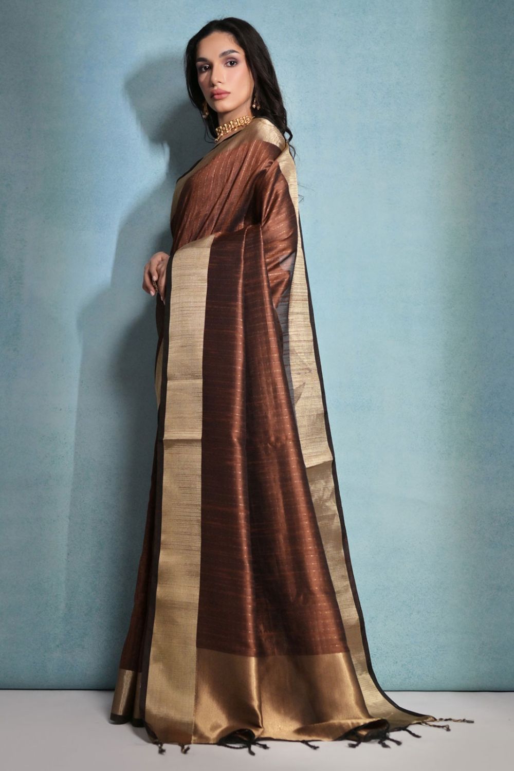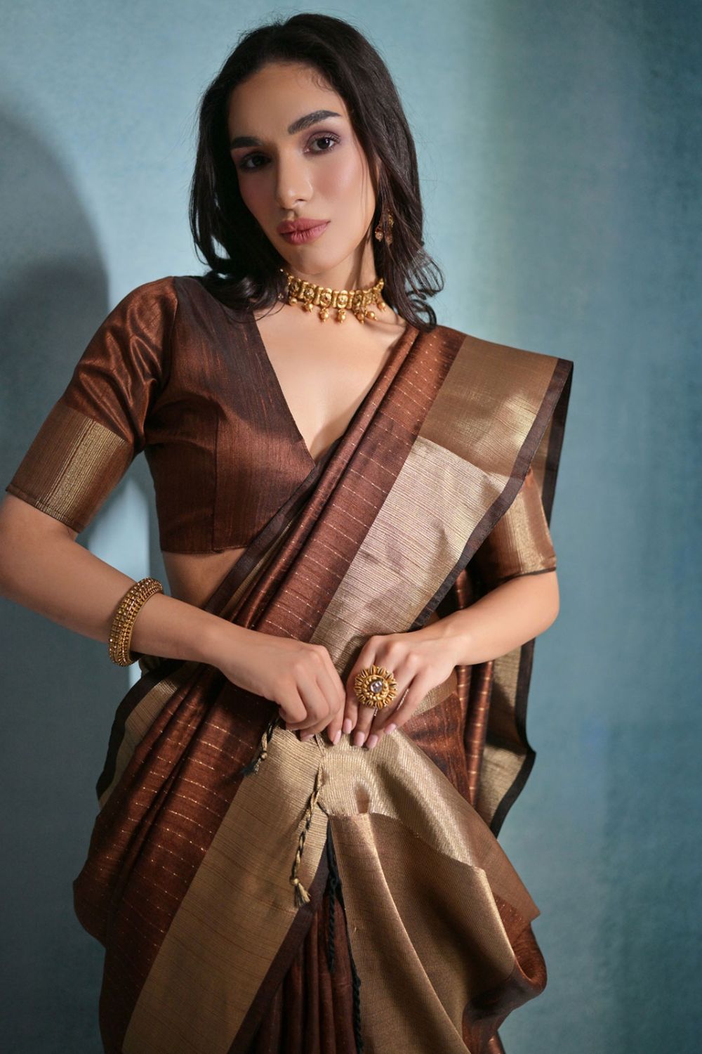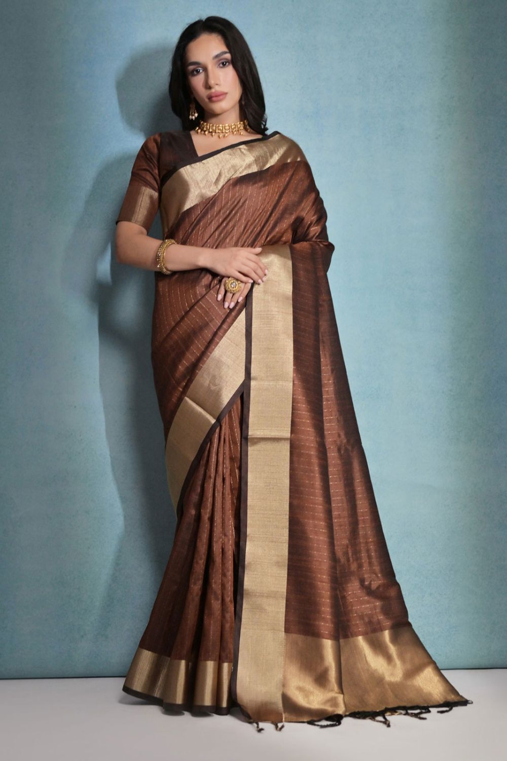 Coffee Brown Raw Silk Woven Party Wear Saree