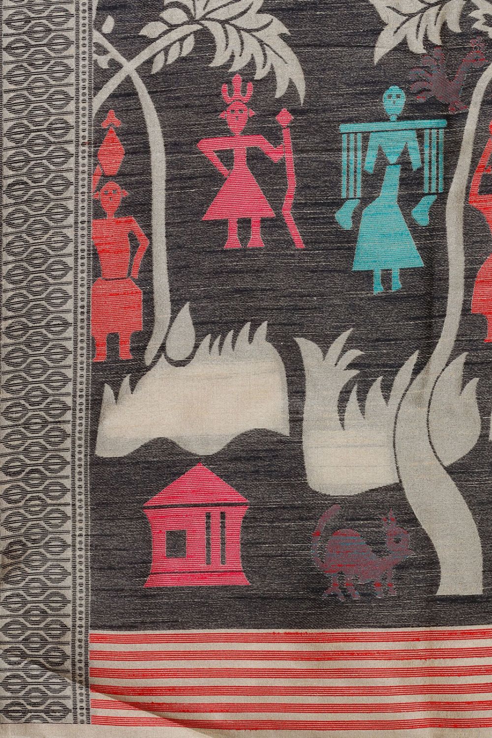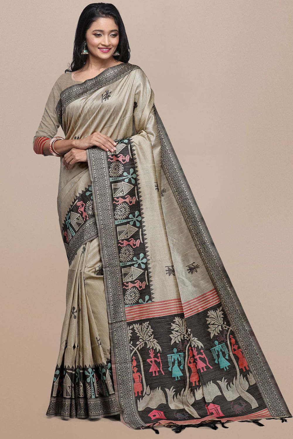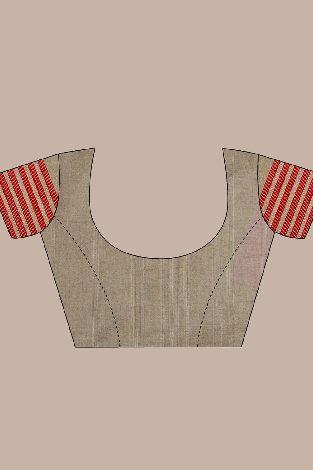 Dusty Beige Raw Silk Saree with Kalamkari Design