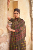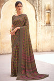 Dusty Brown Printed Crepe Satin Saree for Festival
