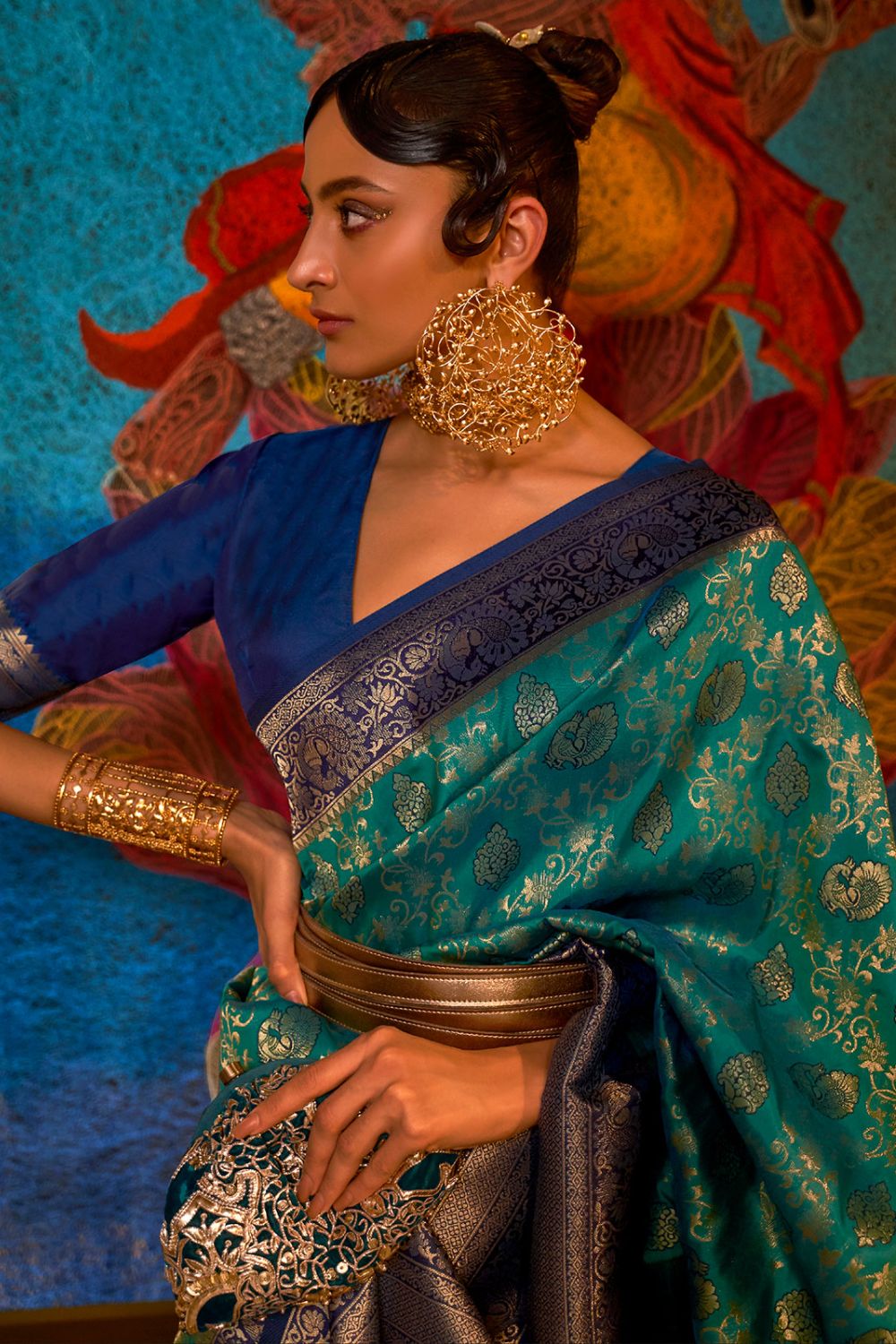 - Saree color - Firozi.