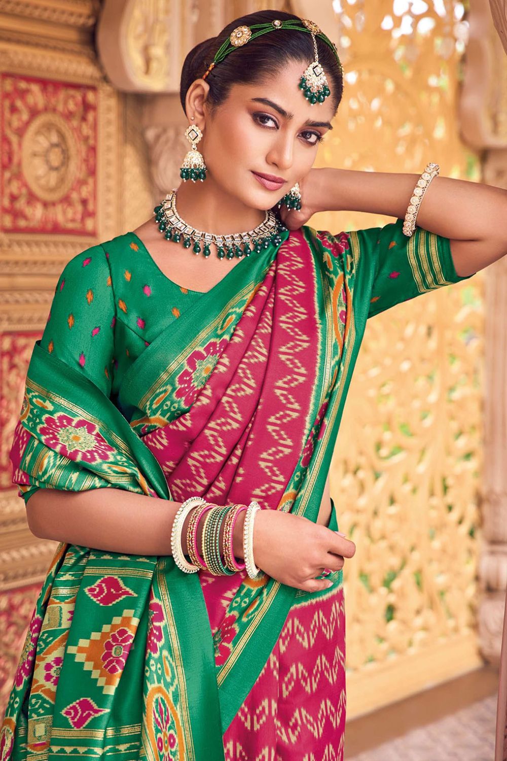- Saree color - Gajari pink.